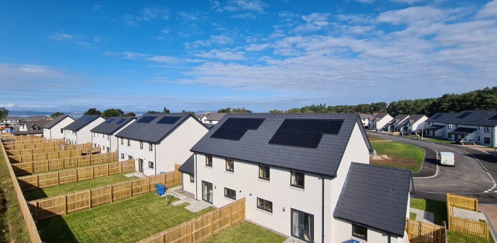 Simultaneously, we’ve also been able to work on several large scale, new-build housing developments. This housing development in Nairn utilised these stunning Viridian Solar PV panels. Reducing ongoing energy costs for homeowners, ensuring environmental targets are met and lowering carbon footprint…what’s not to love?